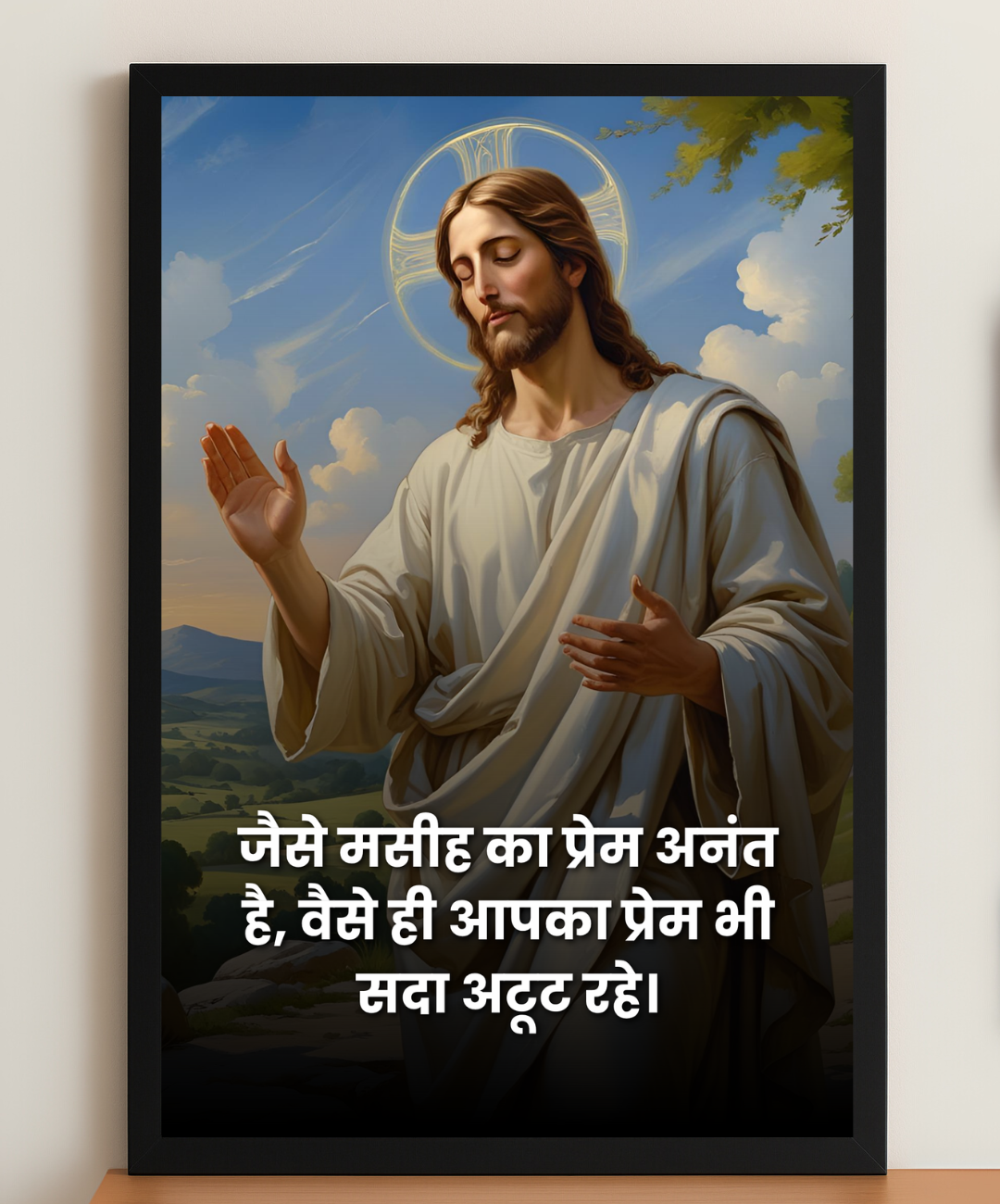 “जैसे मसीहा का प्रेम अनंत है, वैसे ही आपका प्रेम भी सदा अटूट रहे।” This wall art shows Christ’s love that never ends. Keep it in your room, prayer space, or gift it to someone. It brings faith and beauty to your home.